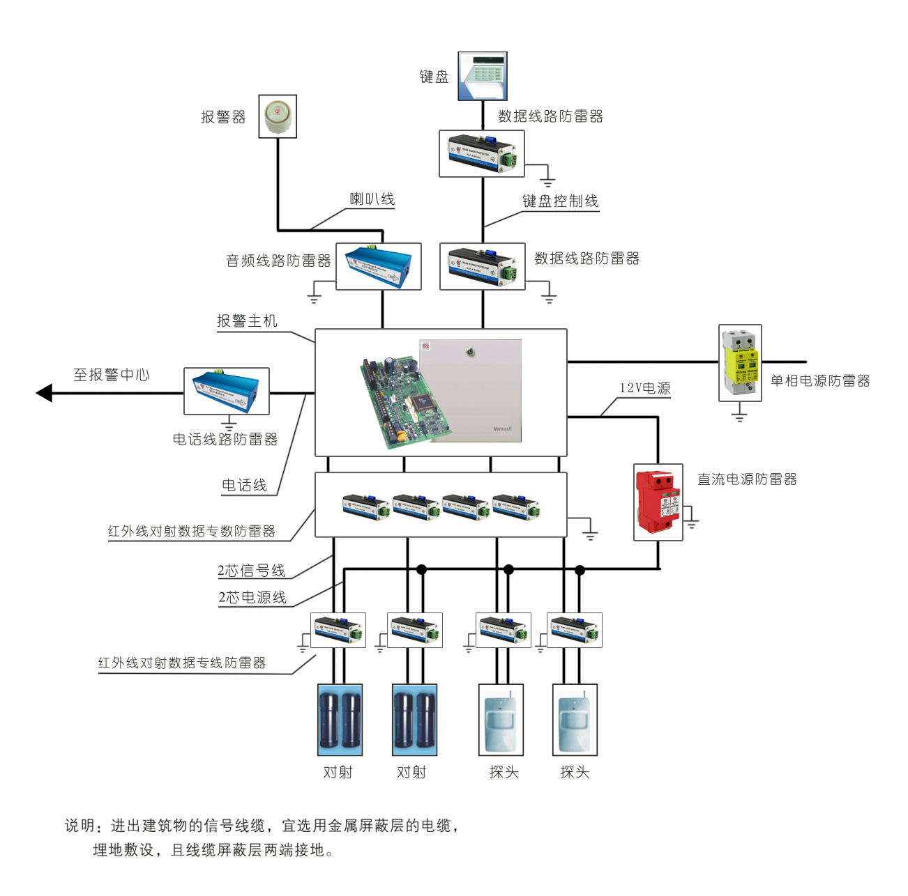 防盜系統(tǒng)感應(yīng)防雷器示意圖