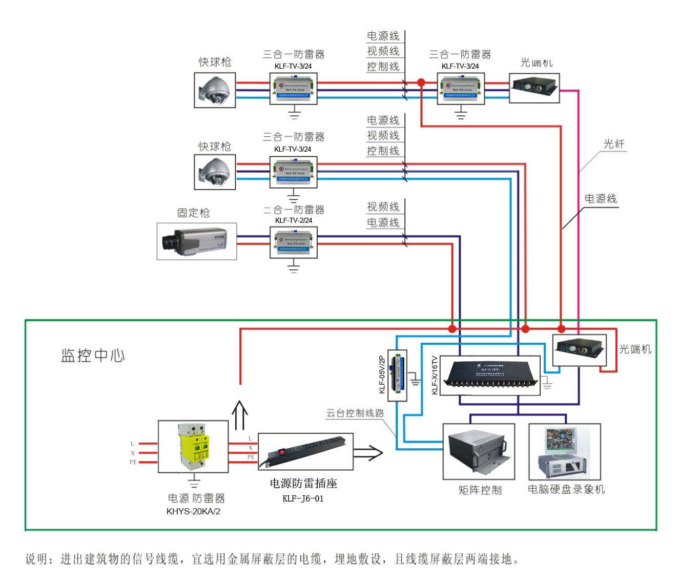 監(jiān)控系統(tǒng)防雷示意圖