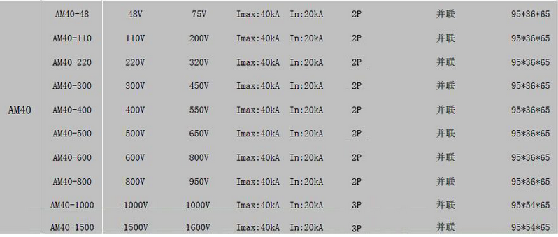 ,型號根據(jù)工作電壓選擇,一般為380V三相電或220V單相單。根據(jù)單三相選擇不同的交流防雷器。目前分布式屋頂光伏發(fā)電系統(tǒng)里面用的交流防雷器主要是三相電源防雷器型號AM40A(380V,4P,40kA),