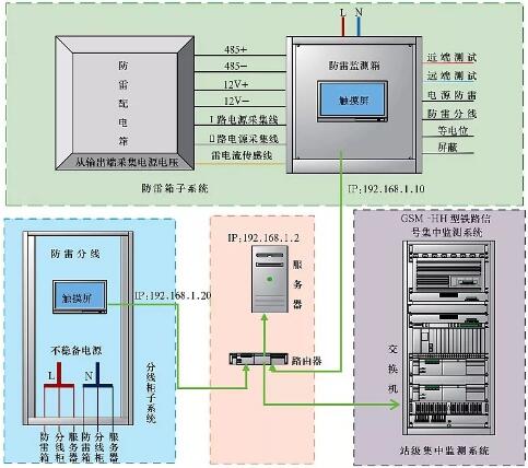 智能防雷系統(tǒng)實(shí)現(xiàn)對(duì)電源防雷箱、防雷分線柜、地網(wǎng)阻值的一體化監(jiān)測(cè)和管理,并將信息上傳至信號(hào)集中監(jiān)測(cè)系統(tǒng),實(shí)現(xiàn)防雷設(shè)備的遠(yuǎn)程組網(wǎng)和管理。