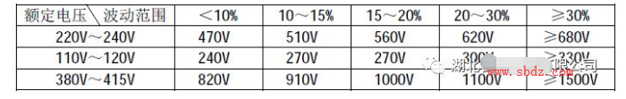 ②社保電子壓敏電阻的壓敏電壓值參照下表選?。ㄟx壓敏電壓高一點的更安全、耐用,故障率低,但殘壓略高);根據通流容量要求選擇外形尺寸和封裝形式,或采用幾個壓敏電阻并聯(lián)(如圖所示為每相兩個壓敏電阻并聯(lián),應挑選壓敏電壓值相近的并聯(lián),以延長使用壽命和確保安全)。