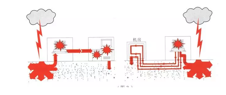 ⑴ 雷電沿市電回路進(jìn)入配電線路并最終進(jìn)入終端設(shè)備,造成設(shè)備損壞。