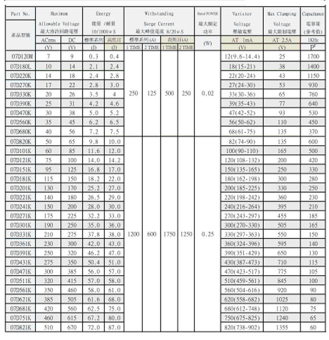 07D系列壓敏電阻是所有行業(yè)當(dāng)中應(yīng)用最廣泛的產(chǎn)品