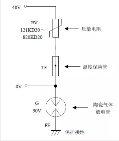 3、陶瓷氣體放電管的通流容量根據(jù)要求的通流容量選擇,直流擊穿電壓一般為90V。當要求的通流容量≤3KA 時,可以用玻璃放電管代替。