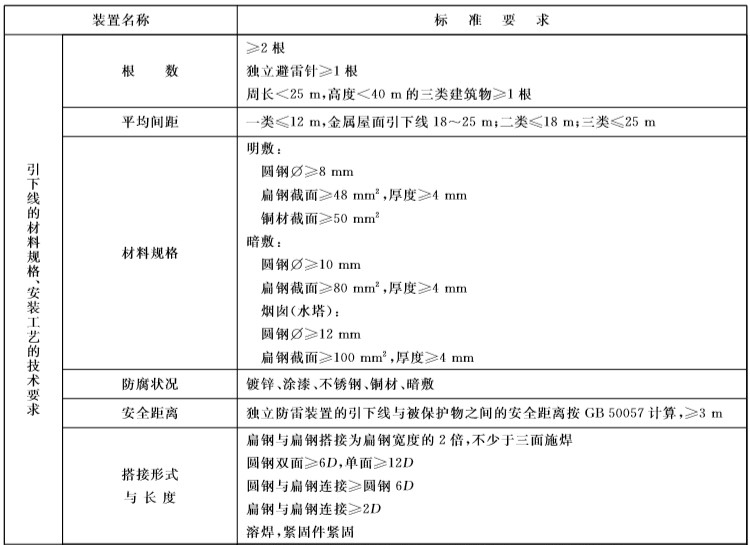 的重要組成部分。為了保證雷電流的泄放效果,防雷工程中用到的引下線要經(jīng)得起強大的機械力,并具有較高的耐熱性和耐腐蝕性,因此引下線的選材和安裝工藝就顯得尤為重要.