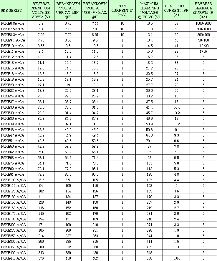 最大反向電壓:6.8-440V