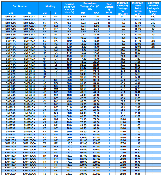 8、200W的峰值功率能力在10×1000μ波形重復率(占空比):0.01%