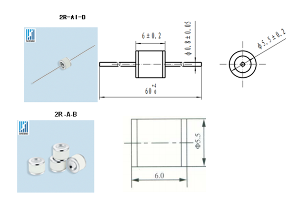 不帶引腳: 2R75A-B;2R90A-B; 2R150A-B;2R230A-B; 2R350A-B;