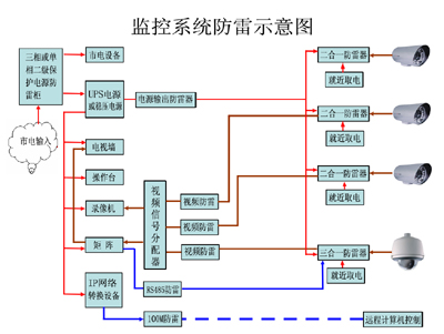 □□系統(tǒng)防雷要從外場的電源、BNC視頻信號端口、RS485信號端口作防雷擊處理,保護(hù)前端設(shè)備。