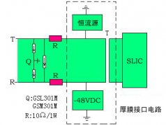◇常見的SLIC保護電路中,均采用PTC作第一級過流保護,然后并聯(lián)ST的3端半導體防雷管作過壓保護。該保護方案不僅成本極高(10元以上),而且實際保護效果不佳。在10/700us電壓波形下2KV沖擊時,PTC已被擊穿斷路。 我公司實際經(jīng)驗推薦的防護方案如上圖,BENCENT專利產(chǎn)品GSL301M(插件)GSM301M(貼片)并接在接口電路最前端,電阻和PTC串接在電路中用于限流。該方案價格低廉(約6元),而且10/700us波形下雷擊測試4KV,設(shè)備無損害。--達到ITU-TK20/K21的最高雷擊標準。