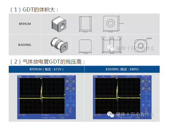 (2)氣體放電管GDT的殘壓高:
