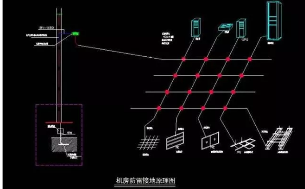 通信機房應按均壓、等電位的原理,將工作地、保護地和防雷地組成一個聯(lián)合接地網。