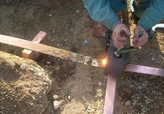 采用角鋼50×50×5mm,長1.5m~2.5m;角鋼與角鋼的連接用扁鋼,間隔≥4~5m,角鋼≥40×4mm;引線采用50mm2多股銅芯絕緣線或按設計規(guī)定;引線與扁鋼連接采用焊接,焊接點需進行防腐處理;接地體離通信機房的距離為15m~50m;接地體埋深1m;在腐蝕地帶接地極需有防腐措施。